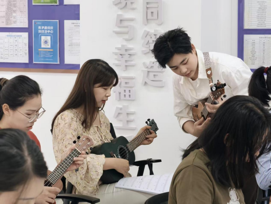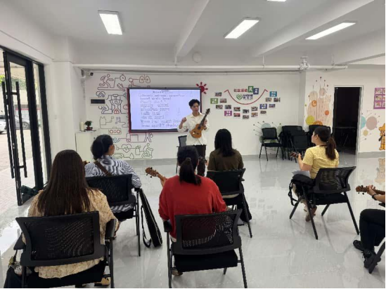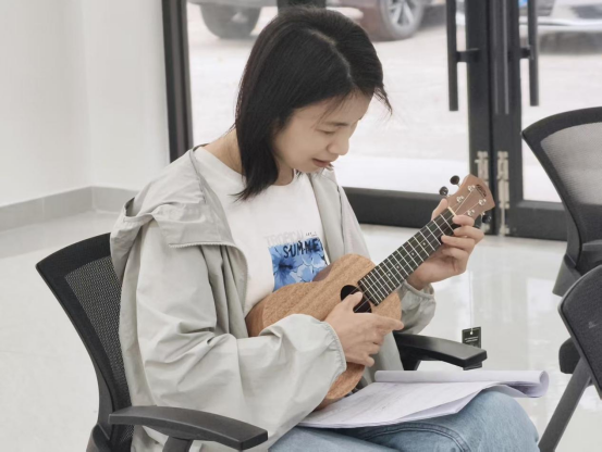 尤克里里课堂上,老师耐心指导:“左手按弦要精准,右手拨弦要轻快。”针对学员手指力量不足、按弦位置不准等问题,老师逐一进行个性化辅导。随着课程推进,学员们从只能弹出单音,到能完整演奏简单曲目。青年学员小林说:“平时工作压力大,来这里弹弹琴,整个人都放松了,还认识了不少志同道合的邻居。”