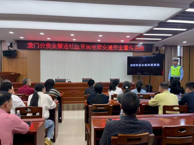 4月2日,惠州市龙门县公安局交管大队组织警力先后走进城东社区、东郊场社区,开展电动自行车、摩托车交通安全宣传活动。