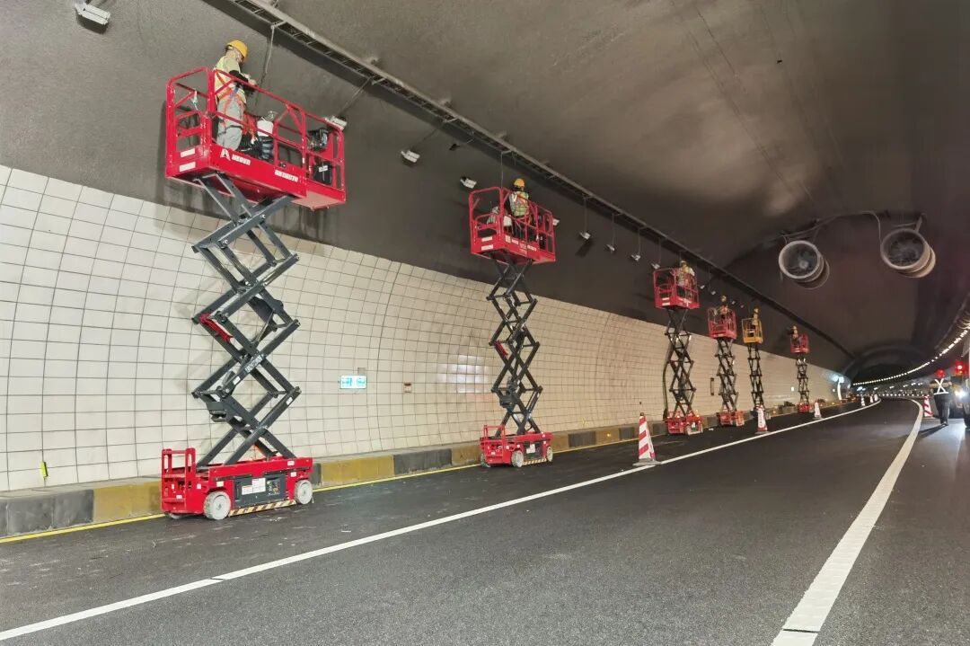 趁着全封闭施工窗口期,市路桥公司统筹谋划,采用“分段流水、多面同步、错峰作业”的集约化施工组织模式,一次集中施工,尽量减少反复封路对大家出行的影响。施工现场划分为“北段、南段、隧道段、伸缩缝维修及路灯更换”五大专业工作面,实现了资源高效配置和工序精准衔接,整体工作效率大幅提升。