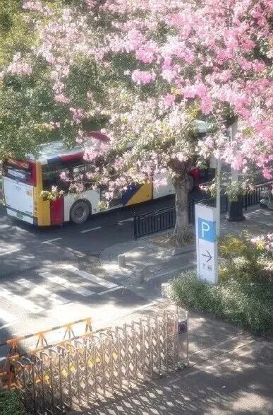 据名先生介绍,这张照片拍摄于去年11月5日,地点位于广州市黄埔区科学城地铁站出口。当时正值午后,阳光明媚且道路旁的异木棉花开正盛,整个场景极具动漫感。拍摄两天后,他将照片打上了原创标签发布在国内社交平台上。约一周前,有热心网友向他反映,这张照片被韩国网友搬运到了海外社交平台上,对方不仅未注明出处,配文还暗示这是首尔的景色。